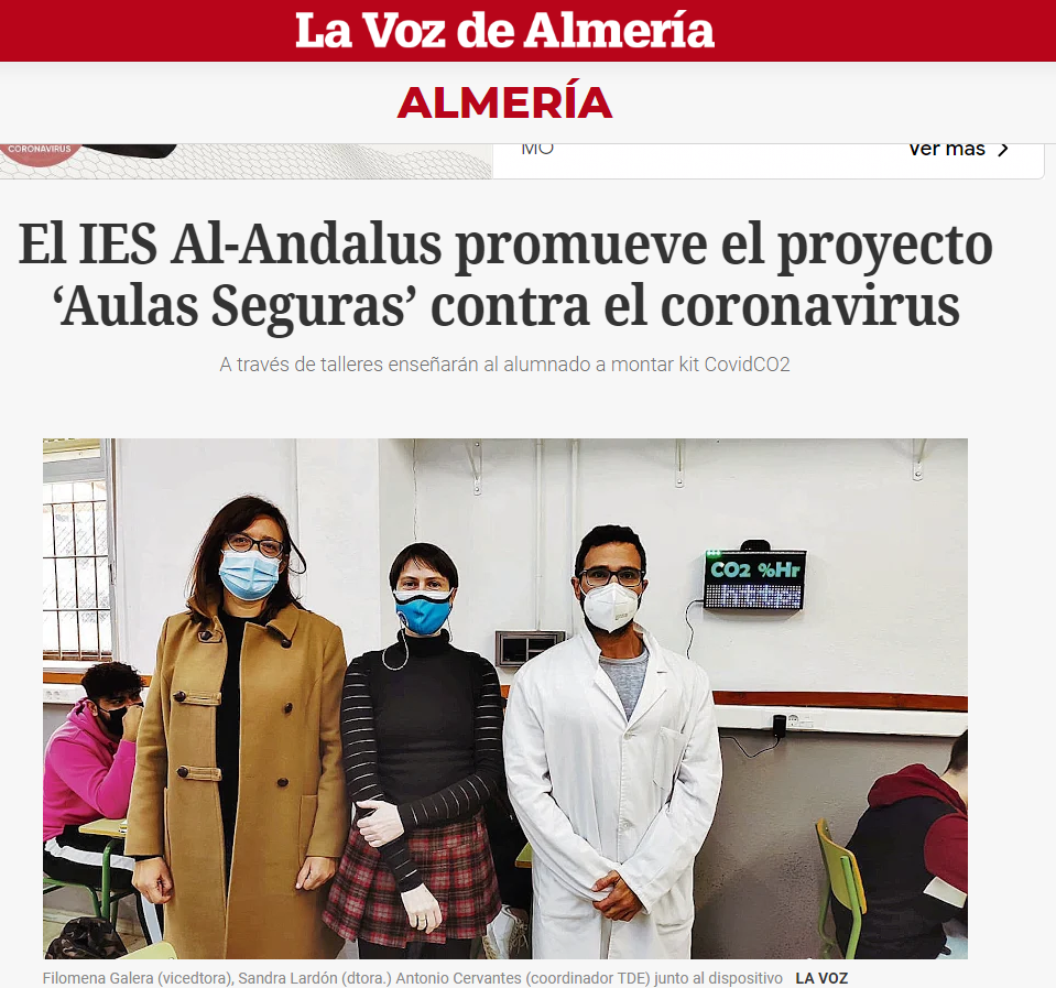 El IES Ál-Andalus promueve el proyecto "Aulas Seguras". A través de diferentes talleres se va a trabajar con el alumnado en el montaje de lo que se ha venido a llamar como kit CovidCO2. Dicho kit se encargará de medir la necesidad de reciclaje de aire.