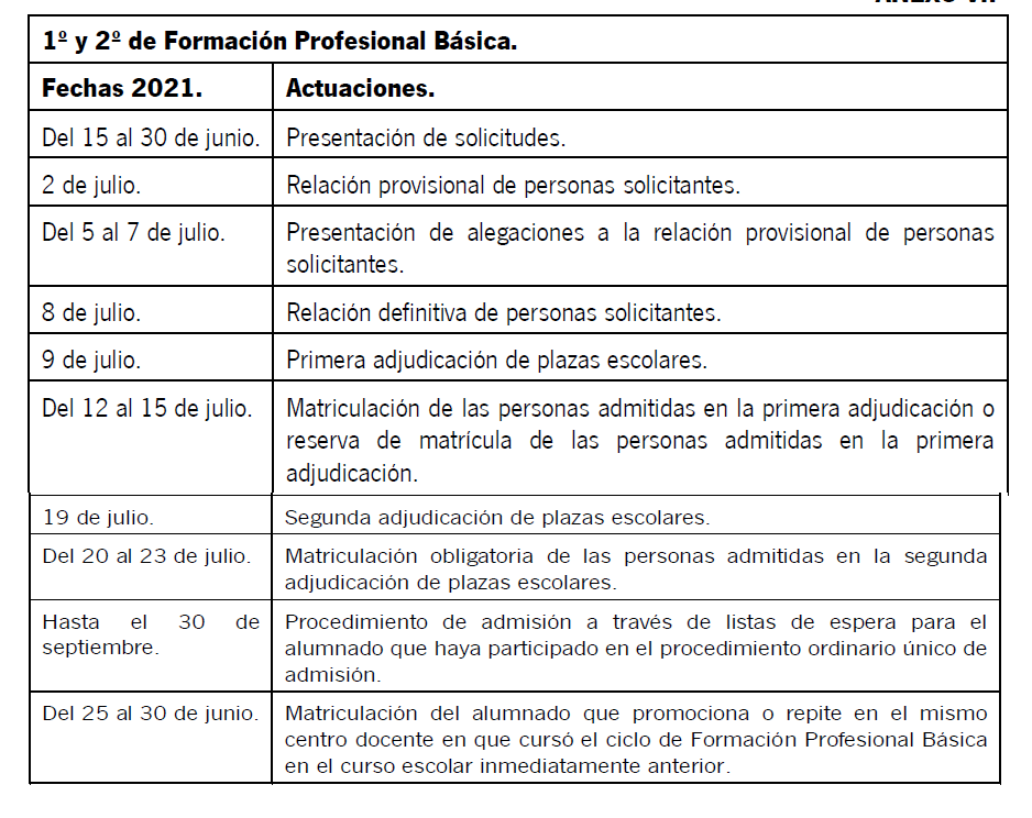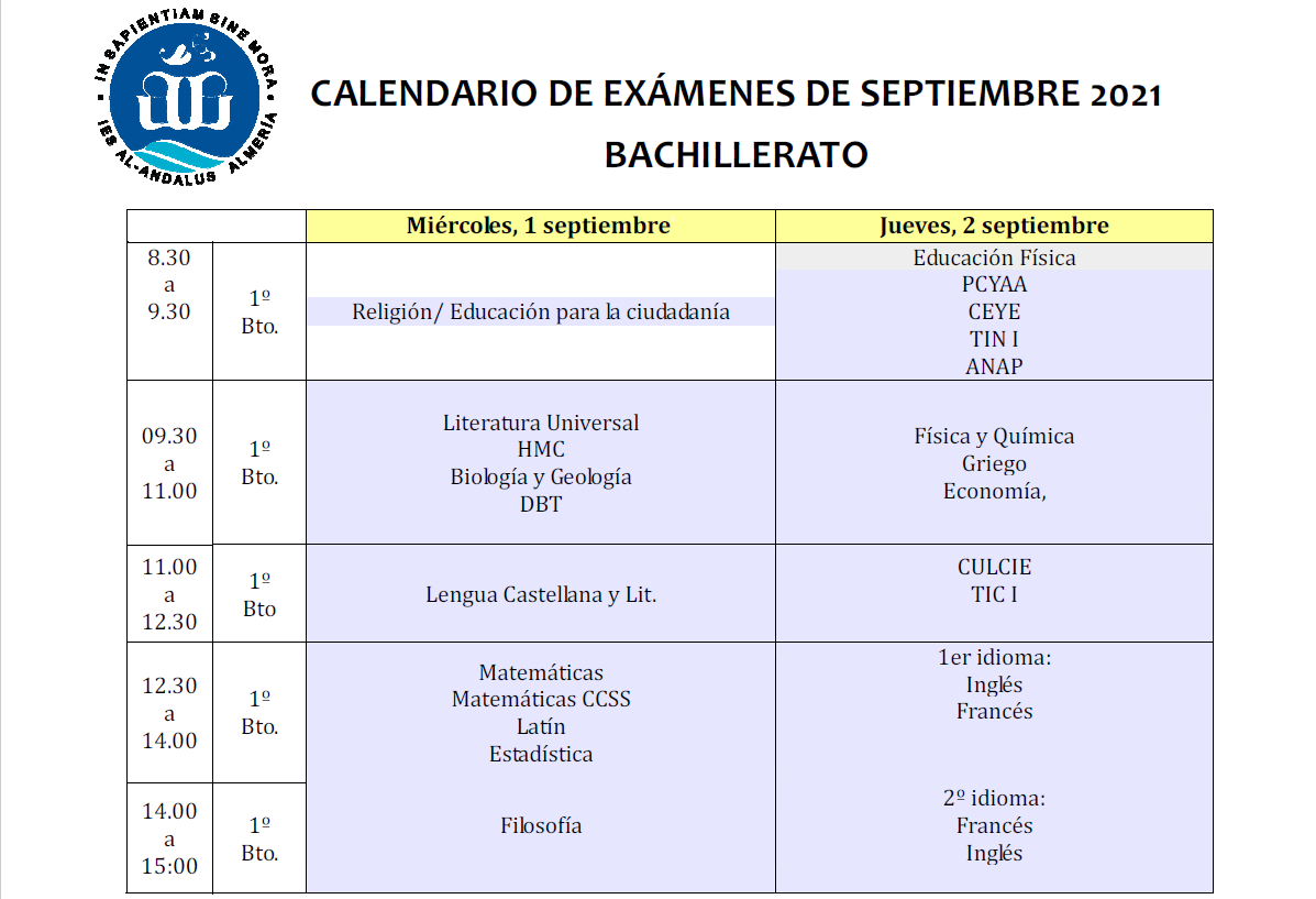- Calendario correspondiente a los cursos de Bachillerato.