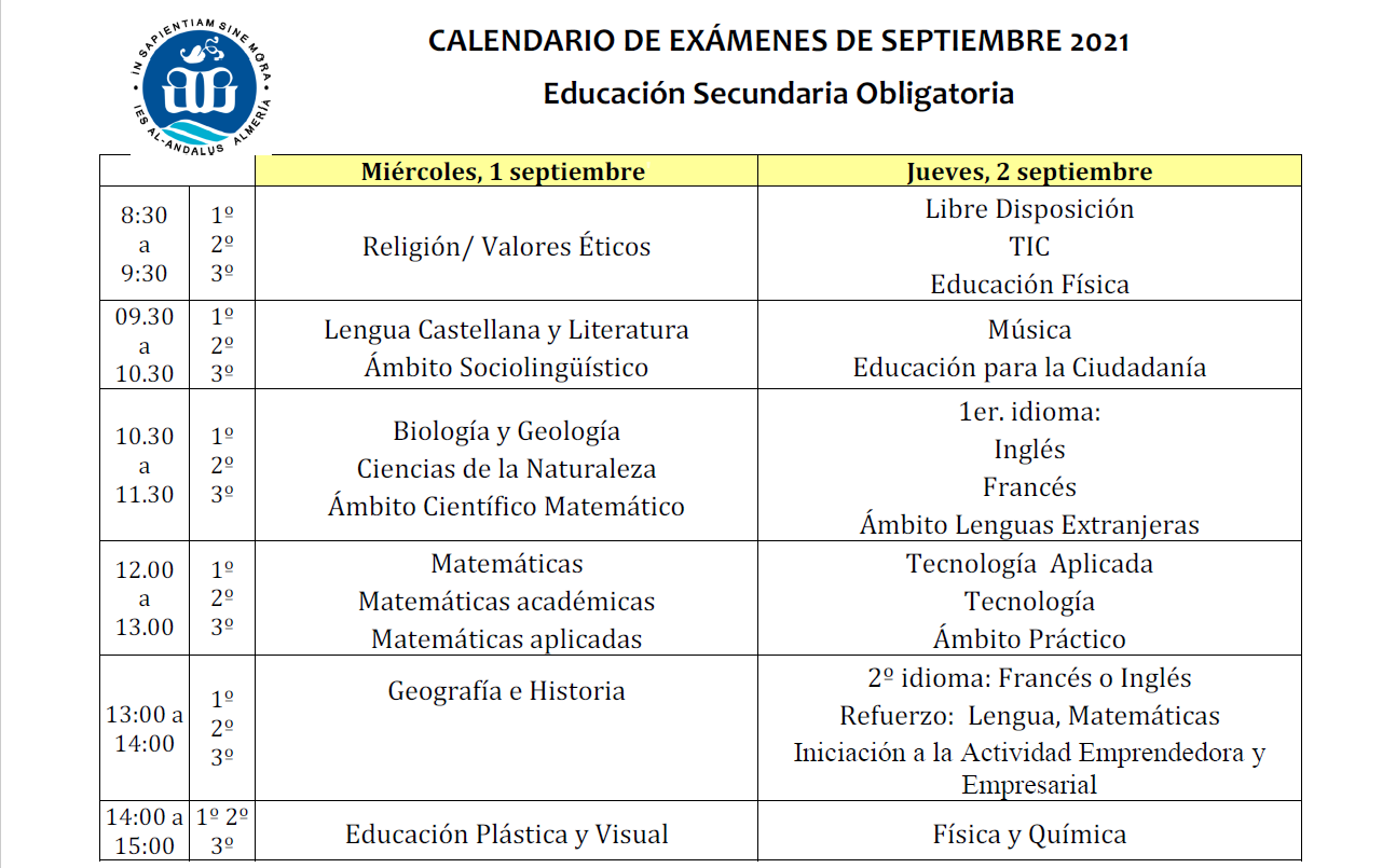 - Calendario correspondiente a los cursos de la ESO.